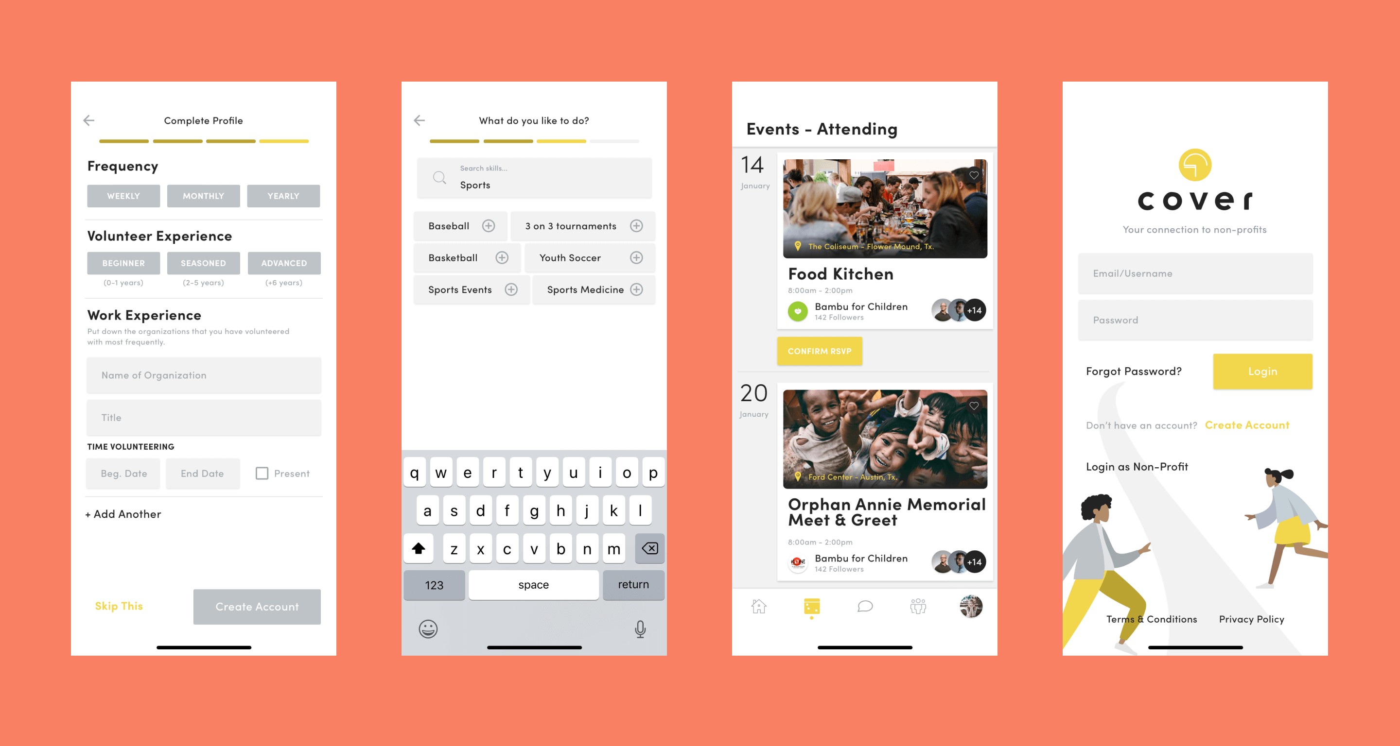 We worked with great design and development partners to help create an app for Cover that covered both sides of the volunteering market.